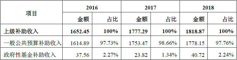 表2 2016-2018年江苏省全省上级补助构成 单位:亿元