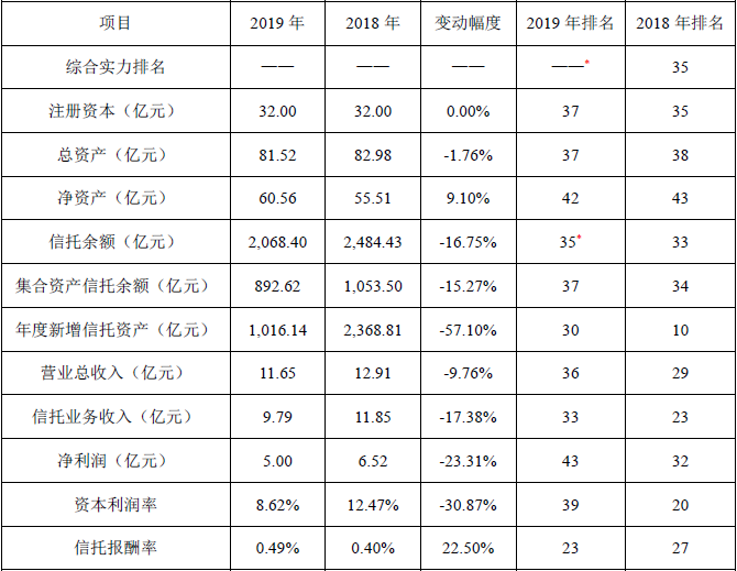 受疫情影响,国通信托2019年年报延期至2020年6月12日公布,因而无2019年用益信托综合实力排名。